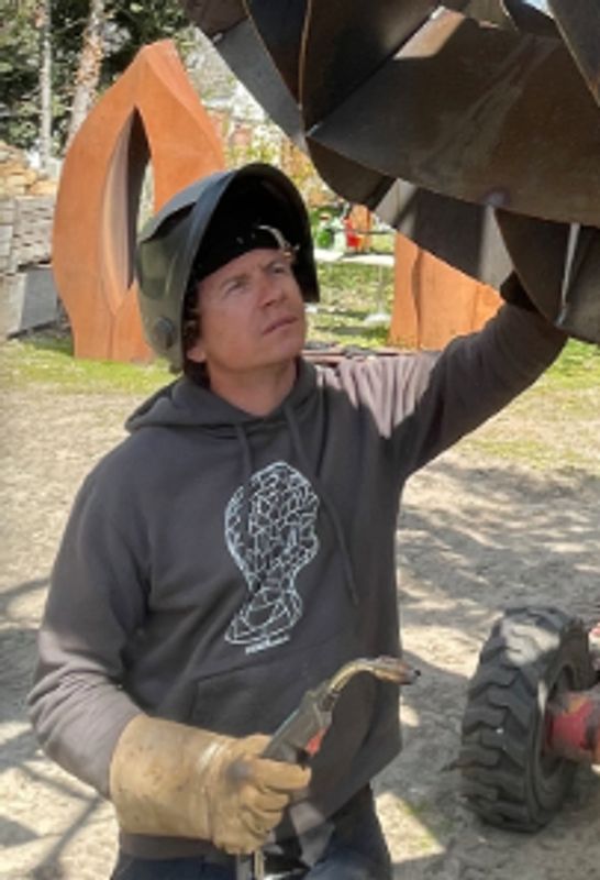 Beroepskunstenaar MAARTEN VAESSEN maakt op expressieve wijze ijzeren roestsculpturen. Hij heeft geen specifieke kunstopleiding gevolgd, hij doet toch niet wat de leraar zegt. Kenmerkend voor Maarten’s werk zijn onafgewerkte lasnaden, lasspetters en ook deuken vindt hij niet erg.